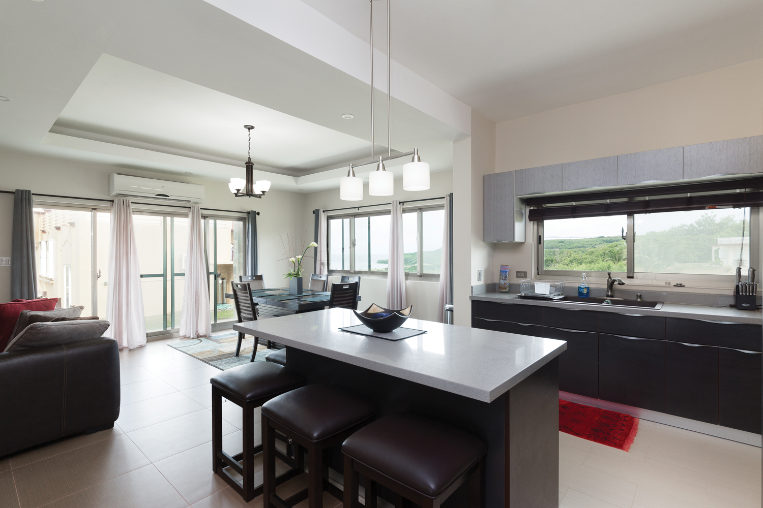 The home’s roof also takes advantage of the panoramic views of Pago Bay and outdoor lifestyle with a large carport, an outside kitchen, and storage. At $4,500 per month, not only is the design of this voluminous and contemporary home mastered, but also the location and breathtaking view is something to treat yourself and your familia to.