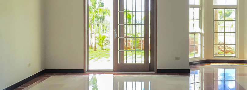 This four-bedroom and four-bathroom home sits on 1,073 sq meters of land, with 3,500 sq feet of living space, beautiful marble flooring, high ceilings, and hardwood banisters along the stairway to the second floor. The downstairs patio curves in a half circle, framed by two stately plantation-style pillars, and opens to the home’s grassy lawn.